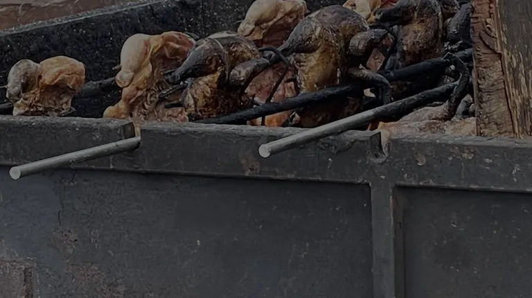 chicken being cooked on a grill