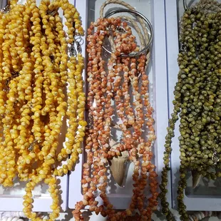 Close up of the gorgeous coral and sea shell necklace and earrings we bought in 2021