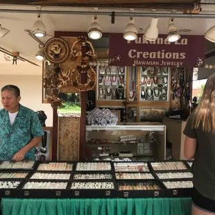 We have bought many things from this shop at the Polynesian Cultural Center! It is a family-run place and every item we bought has been amazing. The jewelry is unique and reasonable. We get 1 christmas ornament from Hawaii every time we go and the last 3 have been from Pukana La Creations! Chaebong creates her own jewelry and it is all beautiful! (Ask her which ones are her creations) Their service is wonderful. They are helpful, and knowledgeable and will explain the different materials their merchandise is made from. They have many different types of merchandise from jewelry to hair accessories to christmas ornaments. We have bought many things and all of the items have stood up to the test of time. So the earrings, necklaces and ring sets we buy at $100 - $200 are well worth it. We bought my sister a manta ray necklace that was a little pricey but is absolutely worth it in every way! Our family loves Chaebong, and the whole family!