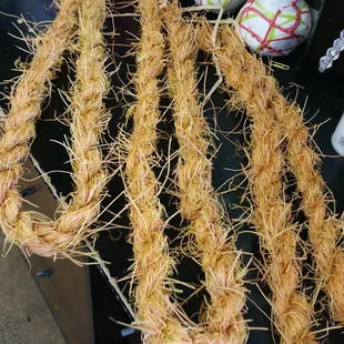 Christmas lei - double tuberose, tinsel, and ornaments. A total hit!