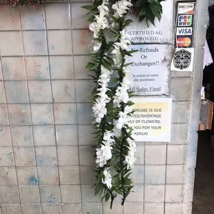 Go in and see Olaa. I ordered lei for our Christmas Parade and they were beautiful! The Christmas lei with double tuberose, tinsel, and ornaments were a total hit. They were really great in suggesting alternatives based on your budget and very accommodating. MAHALO!!!