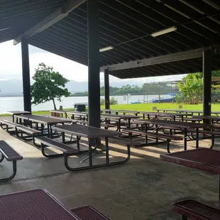 I was invited to a birthday party which was held at the Rainbow Bay Pavillion. The Pavillion itself is set alongside the waters of Pearl Harbor. It's has a nice view of the Harbor. Spacious and clean. The seating iwere metal park benches. The grassy area surrounding the pavillion can accommodate bouncy houses and additional tents. Parking was not a problem. You will need a military sponsor to book here. Enjoy