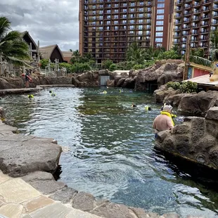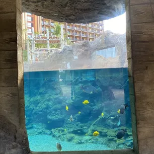 A little bit of ocean right in the midst here in Aulani...Not only can you get a free peek of the fishes though some windows located right across Lava Shack you can actually take a dip along with the fishes for the day or your length of stay though the hours here are short 10am to 3pm so plan your experience accordingly your day pass does allow you to enter and exit as you like as for the day it's $25 for adults and $20 for keiki and for your length of stay it's $45 for adults and $35 for keiki.It is a fun option without packing it all up and voyaging out to the beach this fun and cool place makes exploring something new a breeze as everything here is contained to snorkel and explore nothing like I've ever seen and it's Aulani of course.Thank you!