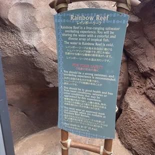 Rainbow Reef is perfect for those who are afraid of snorkeling in the ocean. It's not too deep and you're guaranteed to see many different types of fish. There was a lifeguard who watched closely so it felt completely safe. I paid for a one day admission and was able to go as many times as I wanted that day. All I had to do was show my Aulani guest wristband with a little hole punched in the shape of a fish. There is a rinse off area before entering the water and I was able to use my own snorkel mask.