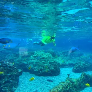 I loved this place. I love snorkeling in the ocean but this is a great place to go with your kids to prepare them for snorkeling in the ocean. The water's a bit chilly and you have to rinse off prior to going in the reef. You also have to rent the actual gear (snorkel & life vest) prior to going in. I chose to select to rent out the vest/snorkel for the length of our stay because it made more sense economically. You can also use the snorkel gear at the beach. My son absolutely loved it here but he was a bit scared to put his little head in under water. Still, it was a great place to prepare him for our snorkel & sail trip on a catamaran later that week. We went in this place several times a day during our trip because it was so much fun. Go during fish feeding times. During our visit, it was at 10:30 am and 1:30 pm. It was awesome to feed the fish and have them come closer to you. They had a photographer there, named Bob, who was amazing! We have several pics which I will cherish forever. The lifeguards kept commenting on how much my son was laughing and that no other kiddos laugh as much as he does. I had a great time and definitely recommend this place. So much fun! They also have 2 lifeguards, one in the reef and one right outside which is great! Highly, highly recommend.
