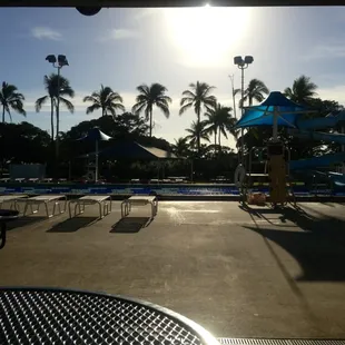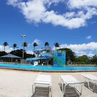 If you can get military access, this pool is free like the Hickam pool but this pool I think it's better because it has a diving board that's a little higher up and a slide that my kids love going down. You just have to pass a swim test that takes place on every 50 min of the hour where you have to swim half the pool length and then tread water for a minute. There are vending machines with snacks. There are clean bathroom and showers and a machine that dries your swim shorts. They have a kiddie pool and an outdoor area you can rent out for a party.