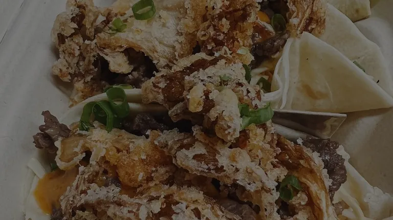 This food truck is awesome, I had the delicious Korean street tacos that has bulgogi, kimchi slaw/cabbage, and topped with some fried Kimchi and hot sauce. I loved everything about the taco, the flour tortilla was soft and they really packed it with the goods. Easy take out, they stand up the tacos in a cardboard separator inside the container which was great. Definitely want to go back and try their other menu items, I've heard that their chicken sandwich and SG French fries are good too!