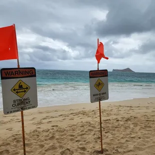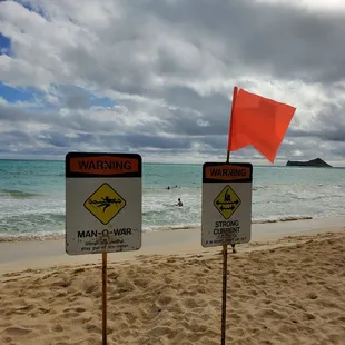 Warnings: Portuguese Man o' War and Strong Currents (9/13/2023).