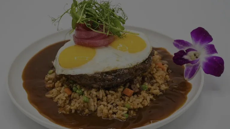 50/50 Loco Moco Medium Well Done, Scrambled Eggs Absolutely Delicious!