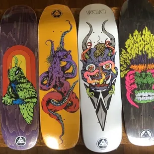 The van full stocked. We carry 12 different brands of decks. Proud supporter of Ace trucks. Wheels available Spitfire, Bone, Powerflex.