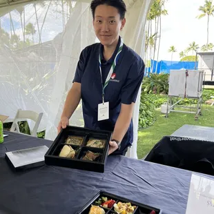 This my 35+ years of volunteering back since 70s when United Airlines was event holder as "Hawaiian Open " this is 26th year of hosting by Sony Open in Hawaii which provides millions of $$$ as charity Event but the Amount of Food and Drinks available was overwhelming from the Sponsors Hys Steakhouse to Lexus to Pasha to Kyo-ya was Great here's some sampling of some Japanese Bentos at Sony Open Event We're already looking for more people to volunteer for next year Sony Open 2025 ! Call me if you're available and interested and we'll provide hat shirts and free lunch even golf at Waialae Golf Course after the event Best is yet to come in 2024 ! Aloha !