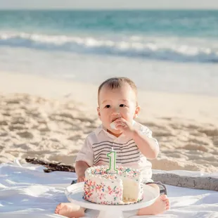 First birthday cake smash on a gorgeous Oahu Hawaii beach.