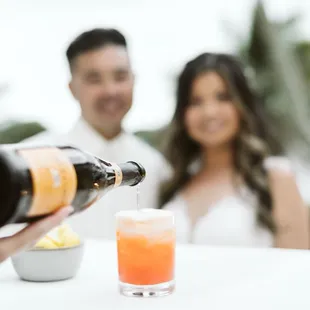 We first met Chad and the StirBev team at WedTalk, where we got to sample their incredible cocktails--and let me tell you, we instantly fell in love with their Mango Mezcal (Mezcal, Cointreau, fresh mango & lime juice, fresh black pepper, and a Hawaiian black sea salt rim). The flavors, the presentation, the style--come on, that sea salt rim?! We were obsessed. My husband and I kept saying we wished we could order this drink at every bar we went to. So, of course, hiring them for our wedding at Lanikuhonua was an absolute must.The StirBev team guided us through selecting 6-8 drinks, and at our tasting, we made small tweaks to our top three to curate our very own "His, Hers, and Ours" cocktails. We were beyond impressed with how they crafted drinks that reflected our personalities so uniquely. They even designed a beautiful drink menu for us, which we loved so much that we framed it and have it hanging on our wall at home!On the wedding day, the team was flawless--efficient, professional, and incredibly warm. The bar setup was absolutely stunning, with perfectly arranged liquor bottles, fresh garnishes, and elegant details that made the whole experience feel cinematic. Our guests couldn't stop raving about how grand and luxurious the bar felt, and the bartenders were not only skilled but so personable and fun!We also added their cigar bar option, which was a huge hit at our reception/after-party. It created such a unique and memorable experience, and we even customized cute matchboxes as favors for our guests.Honestly, 1,000,000/10 recommend StirBev to everyone! I'm already brainstorming excuses to book them again--even though my wedding is over. Chad and the StirBev team, thank you for making our wedding bar experience absolutely unforgettable!
