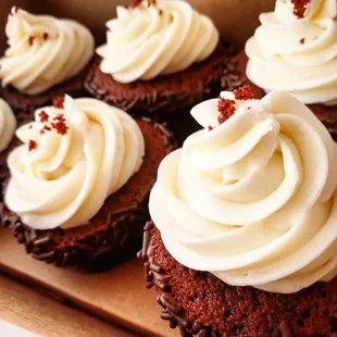Where do I begin? On Valentines Day I received the most Beautifully Decorated, Delicious and Amazing Red Velvet Cupcakes and Chocolate Covered Strawberries! Red Velvet cake with creme cheese frosting is my favorite! And this Red Velvet Cupcake was the best I've ever tasted. I had to take small bites to just to truly enjoy al this yumminess! Oh...and then there was the Chocolate Covered Strawberries that was painted with white chocolate and gold glitter. It was really hard for me to take a bite of it, because it was so pretty! Definitely the largest size strawberries I've ever had. As if this experience wasn't already 5/5 Stars...the Chefs customer service was another perfect star score! I can't wait to take a look at her catering menu! I'm definitely a fan! Thank you so very much for an amazing g 1st experience!