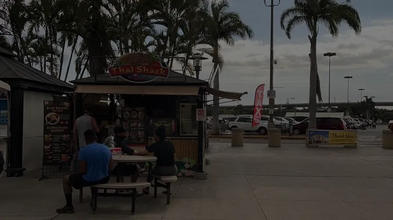 The shack is located outside of NEX...entrance serving freshly made Thai dishes made to order.There are seats outdoors or dine in the food court upstairs with an extended covered outdoor seating many are not aware of. My favorite drink to go their original Thai coffee freshly made with guava and basil seeds. They also have other signature drinks all Chef T original cold beverages that are great thirst quencher. I highly recommend trying their outstanding Thai menu options for take outs or eat at the NEX food court! They're closed on Sunday's and closes early. The food court is open daily until 7:00-8:00 pm...