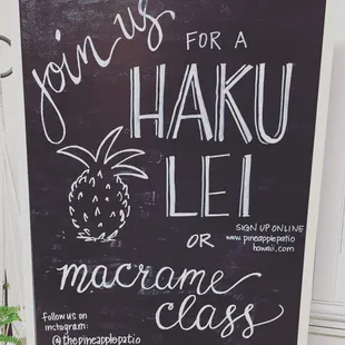 Great experience. Highly recommend you take your girlfriends or your daughters or husbands too if they're into this. It's chill! They're provide all the materials you need to design your own lei po'o! Drinks and small appetizers are served as well.