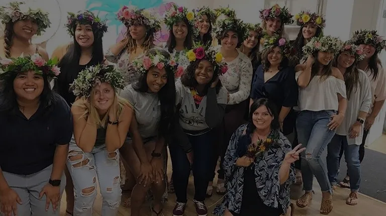 Jen helping me with the final touches on my Haku Lei