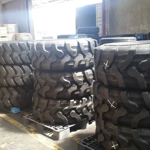 Wide view of some Semi Truck Tire racks