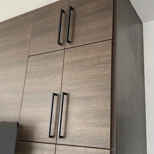We had our kitchen remodeled eight years ago by Home Depot, using cabinets (African mahogany) from Total, and it was absolutely gorgeous back then, and everything still works perfectly and looks great. I haven't even cleaned anything since the tenants moved out, some of the knobs and shelves are a bit dusty still, but you can see that it's holding together really well.