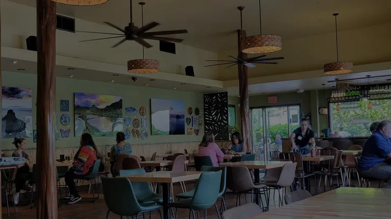 Food is eh, but the service, drinks, and vibes are great! Located in Kailua, I recently came in for a lunch with my Pilates pals. This spot is great for groups, it was super convenient to make an online reservation and it's great that they automatically split the bill for each person and added an 18% gratuity. I really appreciated that they kept every order so organized. The parking is not as convenient but there are a few paid street parking spots up front and a few public paid lots a short walk away. We were celebrating so we each had a few drinks. I started with their strawberry mango marg and was obsessed that they had half the rim lined with tajin and the other half with li hing mui! We also had a celebratory glass of bubbly - we love a fun toast!I ordered the seared ahi with ginger scallion and with most entrees you're able to choose from white rice, brown rice, and another choice of sides like korean sprout salad, kimchi, and mac salad. I went with their brown rice and korean sprout salad. The sides are where it really fell short for me, both had a kinda mushy acidic taste. I tried a few bites of the spicy ahi poke and pork (kalua pig) combo and the fish curry and overall it was okay- no dish really stood out flavor wise and the textures kinda all read mushy. I would come again for drinks and pupus!
