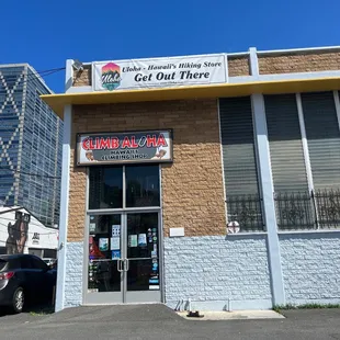The front of the store says CLIMB ALOHA. You are in the right place for Uloha. The entrance looks like a tiny store, but once you go in, it is a huge store with super tall ceilings. Climbing wall in back to try out climbing shoes. Like most small businesses on the island, they have very knowledgeable staff that help you with aloha. The best place for hiking shoes and climbing gear if you want to avoid the big brand stores at the mall. The gear is priced right and their exchange policy is very reasonable for a small business. You have 30 days and you can get something else. They cannot survive as a business if they allowed refunds because tourists would buy gear, go hike or climb with it during their visit, and returned it afterwards. That would be a rental business! That's not what this store is. Same neighborhood as Hi Climb gym too! So convenient. SHOP SMALL! SUPPORT LOCAL BUSINESSES so they stay in business and the big companies don't have a monopoly limiting the customer's options.