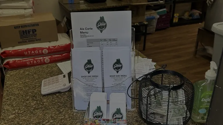 This business made us some good-tasting Hawaiian food. The staff were friendly, and the squid lū'au was delicious.There isn't seating at the establishment. There are a few benches that one could eat at in the center of the office building the establishment is located in, though.