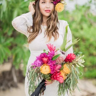 New Bride and Groom - such a beautiful bohemian bride with flower haku/crown. (Photo by Molly Caskey)