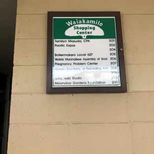 Directory for the second floor