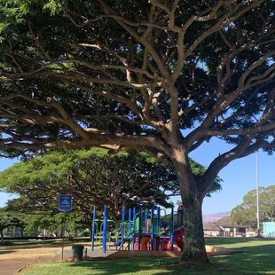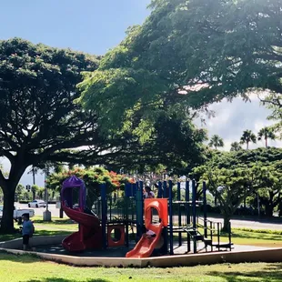 I love this park and bringing my baby here It's right next to the pool writes a small street from office max ufc gym old navy etcBig open parking lot with free stallsTons of trees next to the jungle gym perfect for having lunch at the park under the trees on a Hali'i while the kids get their energy burned Always usually pretty windy from the near by treesperfrct lunch environment