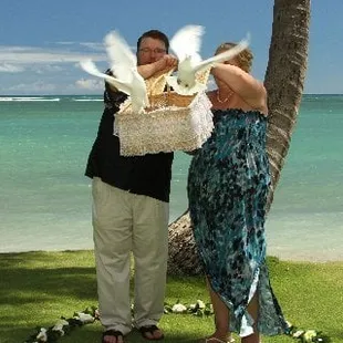 Many years ago we were shooting video of a wedding when we witnessed the couple releasing 2 white doves from a beautifully decorated basket. It was just stunning! We found out it the company was White Doves of Koolau, I contacted Maureen and Dennis and we began offering their dove releases to our clients. We go back several decades now, and they have never disappointed. They raise the birds and love them like their own children. We love Maureen and Dennis for the kind and generous people they are and even if one or more of them are under the weather, they still show up on time and with beautiful birds, ready to fly into the sky when the couple opens the basket, delighting everyone present. Maureen once had to actually wrangle two birds for me for a last minute wedding when Dennis was across the island and she not only caught them and put them in the basket, but she arrived half an hour early despite rush hour traffic. This couple goes above and beyond for their clients and I am just writing this review to say Mahalo to them for their many years of impeccable service and cherished friendship. Thank you from the bottom of my heart.