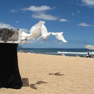 Dove release at Waialae Beach Park, island of Oahu, state of Hawaii.
