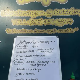 a menu on the side of a truck