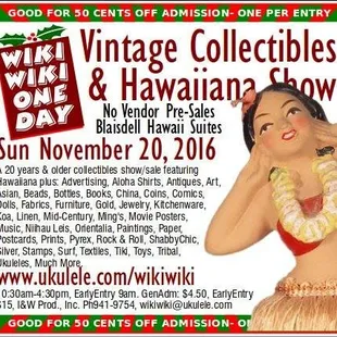 Wiki Wiki One Day Vintage Collectibles & Hawaiiana Show four times a year.