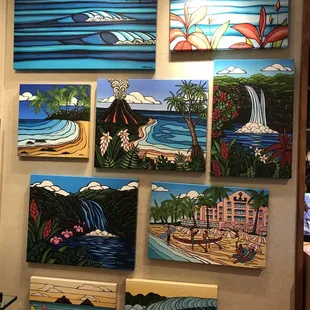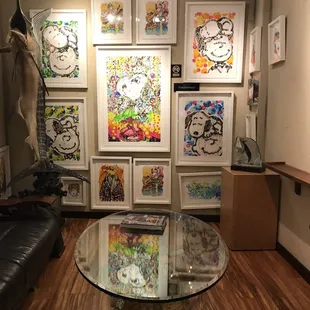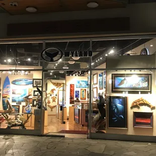 How cool to find this store here. I just found about Wyland's mural work on the side of Seattle's Edge water hotel with his 16 orcas. It was done in 3 days. How fun is this store. My brother and nephew would love the peanuts paintings. Would have been cool to see Wyland here at his gallery working on one of his pieces tonight.