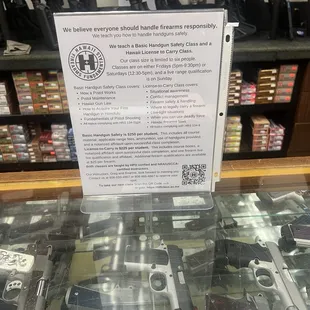 I was just in to pick up a gift card, in this business it's a gift certificate, for my son. This business is literally "locked and loaded" and very professional. No joking, serious and direct. There were several people looking to buy handguns and they were informed of the laws regarding revolvers, rifles and knives.....lots of knives. There was a lot of personal protection stuff ie pepper spray, vests, belts, bullet proof gear. Also an abundance of flashlights, flashing warning lights, tactical lights that would make your backyard light up and seen at the ISS.The staff is patient with people wanting to purchase a hand gun. Going over the specifics and pitfalls and consequences of wrong information or things that would invalidate the application. Seem to know what they're doing and helping you to navigate Hawaii/Honolulu's convoluted gun laws.While they do have a parking lot next to the building there was no parking except on the street which is always difficult in this area. It's not a open-door business. You stand outside at the door until someone comes and lets you in and you won't be greeted by a perky clerk. They are worth checking out and a good idea for a gift certificate for someone who's an enthusiast.