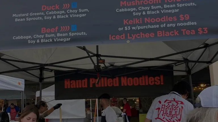 Look, I almost want to give this place one star just to keep everyone away from here and have all the noodles to myself. I fear the tourists knowing the glory of these noodles, for I have come to loathe going to the Kailua Farmer's Market to battle the hordes of the great sunburnt spectators.Anyway, these noodles are flat out amazing and I will be over the moon when/if they transition from farmer's markets to a regular restaurant location.I ordered the tofu & mushroom (spice level: 4 out of 4) and even though I knew I would be popping heartburn medication later, I WILL EAT THEM AGAIN! The noodles are insanely huge, flavorful, and the tofu and mushroom are a perfect addition. The only thing I didn't love and that we kind of left behind were the copious amounts of greens (bok choy I think?) and bean sprouts stuffed in with it. I would be willing to pay extra to have just tofu, mushrooms, and noodles.I have so much respect for the chef who stands back there and rolls, slices, then pulls the dough before they become the miracle ribbons they are.