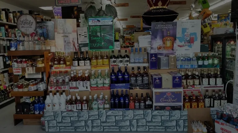 the front of a liquor store