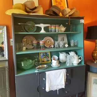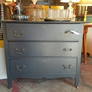 Very small yet well curated consignment featuring refurbished furniture, so keep this in mind if you're looking for pieces to DIY. With that said, there were a few small cabinets inside that I felt could use a little more TLC in terms of modernizing, but in great working condition. The place is hard to miss, even though it's in an "alley," a rather large alley, mind you. It can be easily seen from E. Westfield BLVD. Many of the surrounding restaurants will text you when your table's ready which enables you to venture out and explore places like this. With that, there's a lot of traffic moving in and out of this little place.Inside music's always playing on an old record player. You'll find dishes, lamps, smaller table top decor, records (which you can test on the player), art prints and posters, nursery items, to name a few, and of course the aforementioned furniture. Rocking chairs, dinette sets circa 1970s, end tables and small cabinets where there during my July 2015 visit.