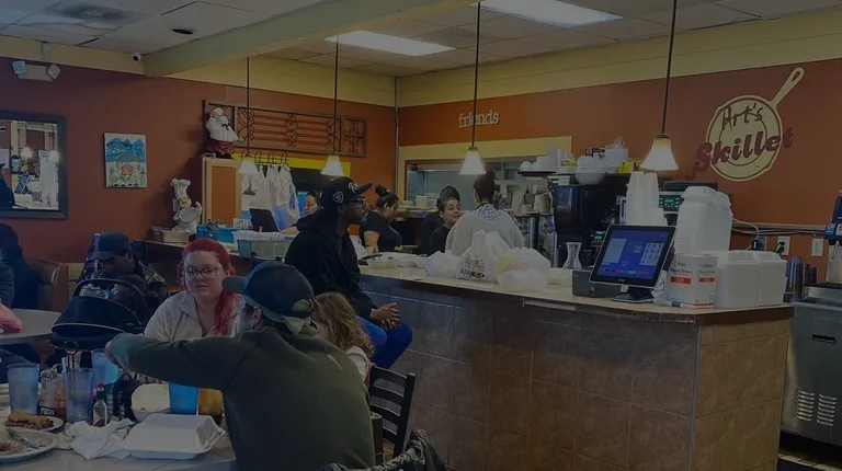 Yesterday, I went to brunch with my twin brother and husband. We wanted to check out something near my Twin's neighborhood and Art's Skillet is just a hop, skip, and, a jump from him. We walked in about 12 noon, had a slow start to my morning and didn't get out the door as quickly as planned, and when I arrived I was literally starving, only drank my hot tea all morning no food yet. We walked inside and were seated right away, when I tell you we weren't even standing up front for one minute, I'm not exaggerating. But that didn't mean their weren't customers, this place was full and busy. Didn't feel cramped or anything like that. Plenty of seating for our small party or a family if you want to bring your entire crew. Our waiter was a true gentleman, he was funny and super efficient. This is a Latin-owned restaurant I believe, so our waiter spoke English and Spanish. I took Spanish a good chunk of my grade school and secondary school so it's always refreshing to catch up on some of that in the community. Our drinks and orders came out in less than 5 minutes when I tell you they were on it, they were ON IT! This was perfect for me since I decided not to eat all morning. I ordered the Art's Combo Platter which is basically a 2x2x2 style breakfast platter. The pancakes were just ok (they didn't taste very pillowy or soft, and were a bit grainy), but the scrambled eggs were cooked well, and the bacon strips were crispy. I ordered potatoes with my platter, and they were fried, but I could tell they added salt and that was honestly too much. My advice, ask them to hold the extra salt on the potatoes. Everything eaten together tasted like your typical diner breakfast, and it was hot and ready. Enough food to take some home if you would like and you cannot beat the prices! Very good prices for the amount of food you actually get. Oh and did I mention the MENU! They have one of the largest selections for a menu I have ever seen! Enough options, for the picky eaters, regular eaters, heavy eaters, and light eaters. Their menu spans the entire spectrum of breakfast and lunch offerings, and they also serve Fajitas! I would give the actual food a 3.5 star rating overall, and I gave the overall experience a 4 star rating because their service was truly superb! It's loud in this restaurant so if you are looking for a quiet spot this isn't the place.It's nice to gather for another meal with my twin brother, and we agreed this restaurant is now a staple for us! 03/19/22 - Jackie M.