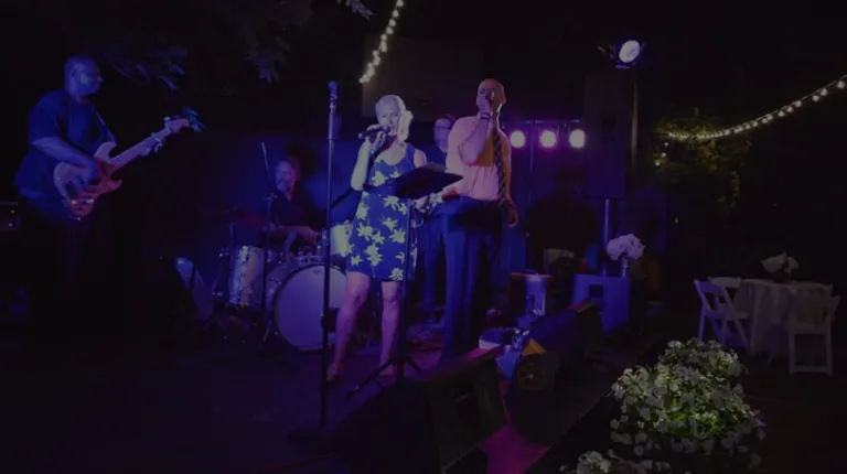 band stage setup (flowers and cafe lights not included)