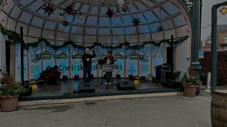 Standing heaters kept us warm while we listened to the band and enjoyed the bar.A few vendors selling all things German including food.Picnic tables and seating scattered around.Parking garage nearby.This cozy venue beside the Rathskeller will get you in the holiday spirit.