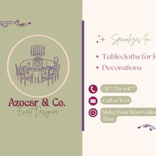 I hired Azocar&Co for a galentines event that I was hosting, and it went phenomenal. It is a company that has reasonable pricing and will work with you to achieve what you would like within your budget. The decoration came out great! Will be contacting them again for future events!!