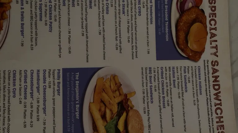 Good food personal service. Attached is the awesome menu and quite the selection. Will visit Benjamin's again!