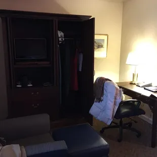 Wow, it was finally reasonably priced when I was in town for a campus visit w a grandson. His sister who is a current student could easily visit. Comfortable beds, nice bathroom, tons of places to store or plug in stuff. Great shower & bathroom. I had a view of a beautiful cemetery. My only complaintIn was while it was clean, it wasn't "to the corners" clean.