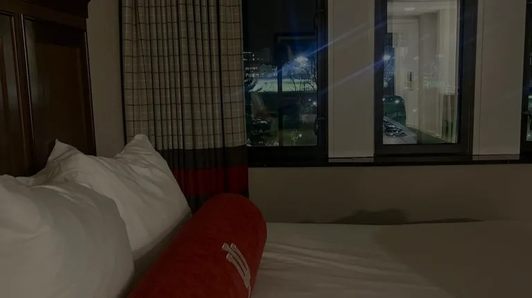 I was staying on campus for work for a conference that was happening in the Indiana Memorial Union. The Biddle Hotel is in the same building, which was SUPER convenient. The campus is gorgeous. As far as my stay, the front desk was wonderful during check in. They have a text concierge system and texted me about an hour after I checked in, asking if I was settled in ok. Later on that night, I had texted the concierge asking if I could put my breakfast room service on a separate card. He answered within 10 minutes. We spoke via text and I met him downstairs to give him the card info. The system was super easy and I think a great addition to a hotel service! The room has beautiful windows, a great big bed, a desk, lounge chair, a large tall dresser with a full ironing board and iron. There is also a small bar area with a large mirror, sink, coffee maker, makeup mirror, and your own fridge! The bathroom is a bit small but newly updated with beautiful tile. It doesn't have much counter space but because the bar area has a large mirror with a makeup mirror, one person can use the bathroom while another can get ready outside of the bathroom. I had a breakfast order for the next morning (they leave a paper door hanger that you can pick your breakfast order and leave outside your door until 1:00am. They have really extensive options and you can schedule the time you'd like to receive breakfast. When I received my breakfast, everything was hot and tasted great! I was very pleased!Overall, my stay at the Biddle Hotel was wonderful. If you ever need to be on campus for an event and need to stay over, I highly recommend!