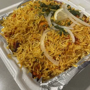 We ordered a tray of Chicken Biryani to go (fed 6 adults) and paneer makhani w/white rice. The chicken biryani was perfect! Spicy, delicious, and the chicken absorbed most of the amazing goodness! The portion of the paneer makhani was small, but my son said he enjoyed it! We will definitely be back!