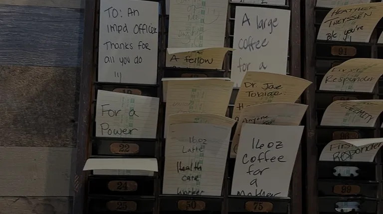 Connected to the Bottleworks Hotel, Blue Collar Coffee is a good spot to grab coffee on the go. One unique aspect about Blue Collar is this board that gives individuals free coffee as a "pay it forward" movement that shows the community of Indy.