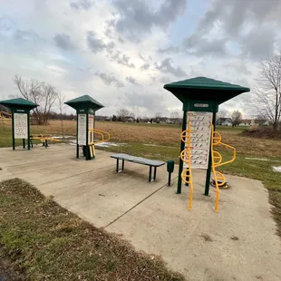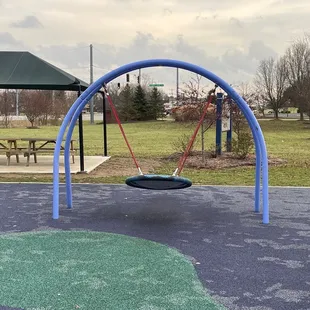 This park has a lot of cool features for parents and small children. First, there is a large parking lot near the main playground (note that the second entrance on the road is inbound, while the first is one way exiting the park.) There is also a large shelter with numerous tables near the parking area too.The best feature of the park is an accessible playground with new equipment designed to be more inclusive of all kids. There are a variety of swings including paired sets that allow the parents to sit facing their toddler and swing together. There are ramps and slides and a giggle machine that laughs when you turn the crank.The trees near the playground have been planted to form a shaded passage along the connected Franklin Greenway Trail. Other features of the park are a large fishing pond, a full sized disc golf course, a bike repair station, and a prairie wetland that has plenty of blooming plants.Not far to the west along the trail can be found another playground, a workout station, a basketball court, and a remote shelter that seems somewhat impractical because of its distance from the parking lot and lack of tables.The park was clean during my visit, but because of its closeness to the wetlands, there is a definite lack of drainage. I visited after a light rain and several of the pathways were flooded over. Another park visitor says that heavy rains bring debris from the nearby creek to the lawn areas of the park. So, plan your visit for a dry period when you will have full access to the park without getting your feet wet.Review #991