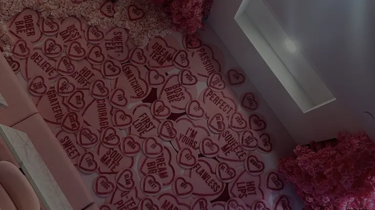 a mural of hearts and balloons