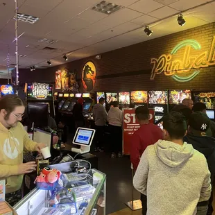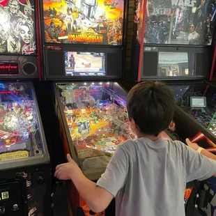 The guys working here are waaaaay nicer than I expected, especially considering how many obnoxious folks I witnessed them dealing with. They went out of their way for my boys and I... maybe because we used words like please and thank you. It's like the old-fashioned arcades you used to find in the mall. But instead of cashing in $20 for quarters (or more...), they charge a $10 admission fee per person and all the games are free. They have them rigged to start automatically or they'll give you tokens to feed the pinball machines. Your $10 admission fee is good all day... so if you really just wanna lose yourself in Donkey Kong for several hours, feel free. The do have newer game consoles hooked up on TVs in the front, too... the only caveat with those is that you have to give the employees an ID to hold on to in order to borrow a controller. Because apparently customers were either walking off with the controllers or dropping them/beating them up intentionally. Sucks when a few ruin it for all. But overall, a REALLY cool place to hang out for a few hours and have fun without the "upsell/keep adding credit" worries you have at a place like D&B or C.C.